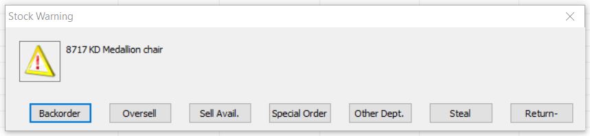 - Steal (item is reserved for another customer that isn't taking immediate delivery)